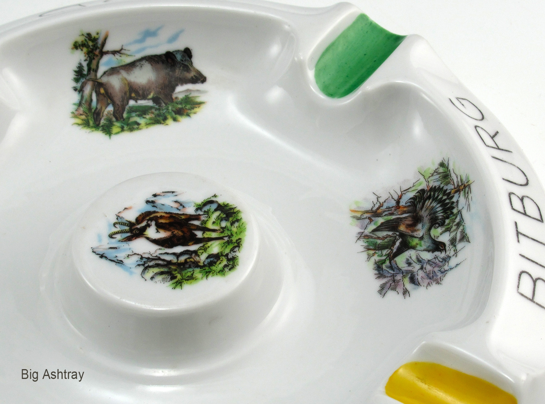 Searching the internet, you’ll find this to be the only Bitburg Rod & Gun Club ashtray available (at this time). There are a few examples of smaller Bitburg ashtrays, not available for sale, but we haven’t seen another like this one.