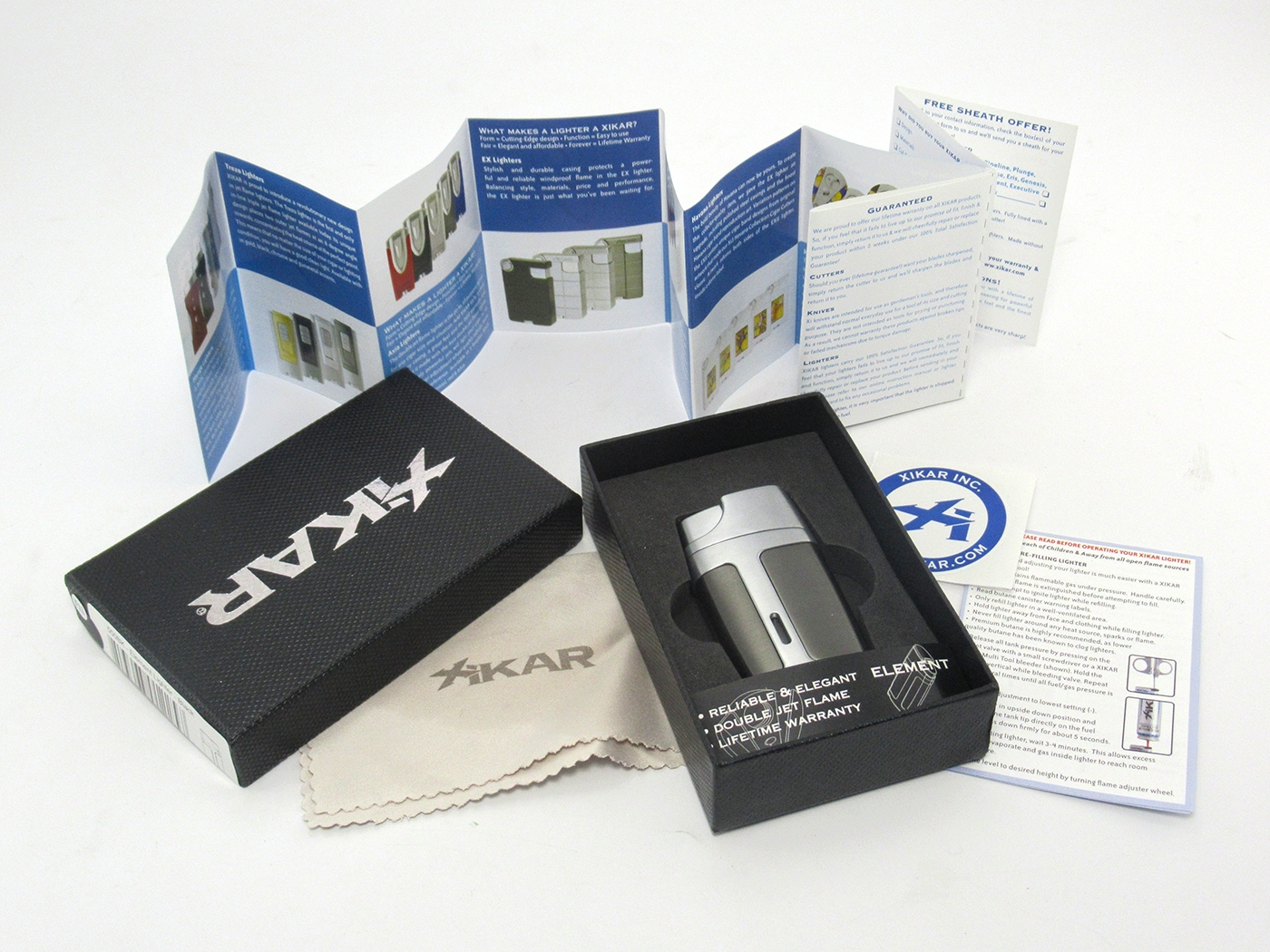 Well designed, high quality dual jet flame torch lighter sure to please your favorite cigar smoker. Packaged in a sleeve protected gift box with use and care instructions. A soft Xikar brand polishing cloth is included.