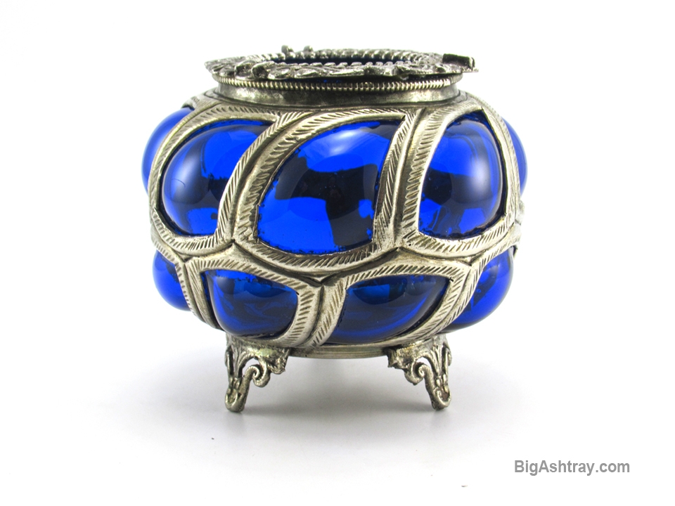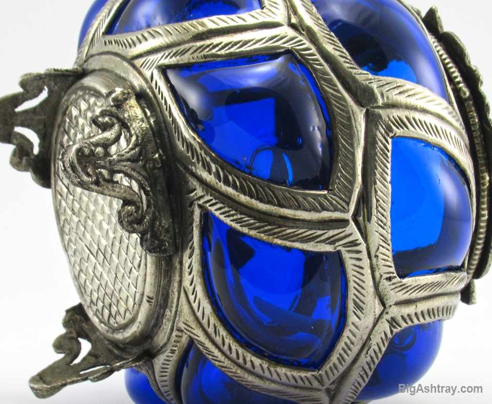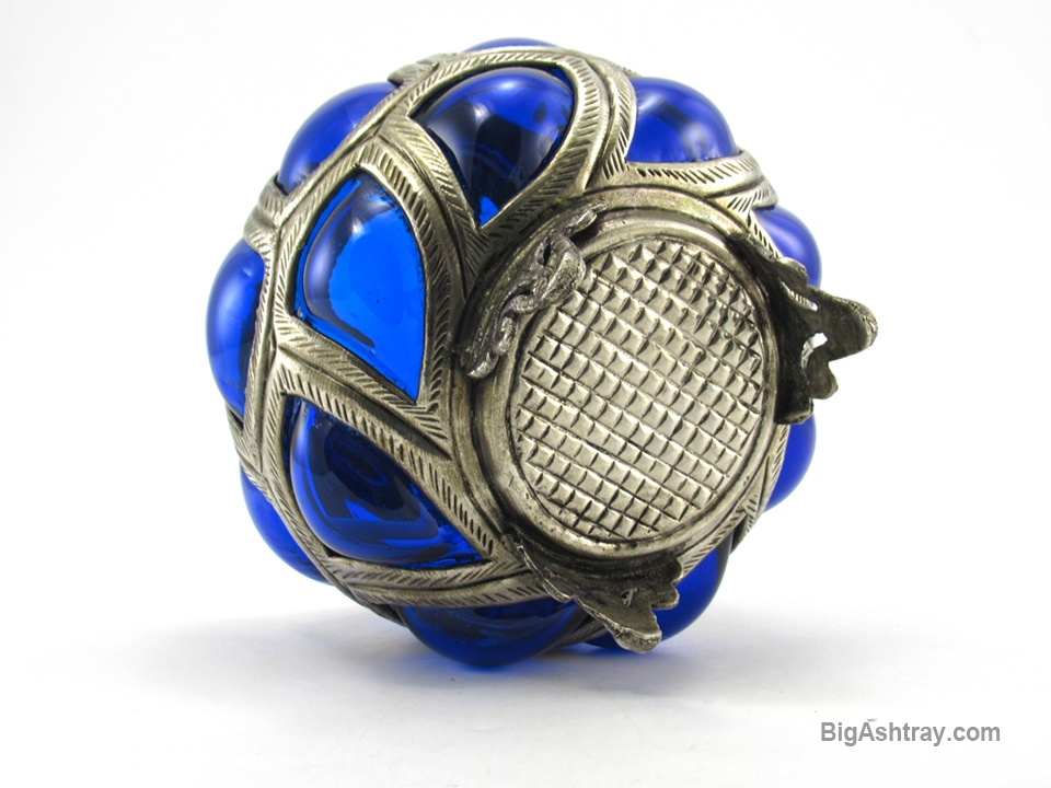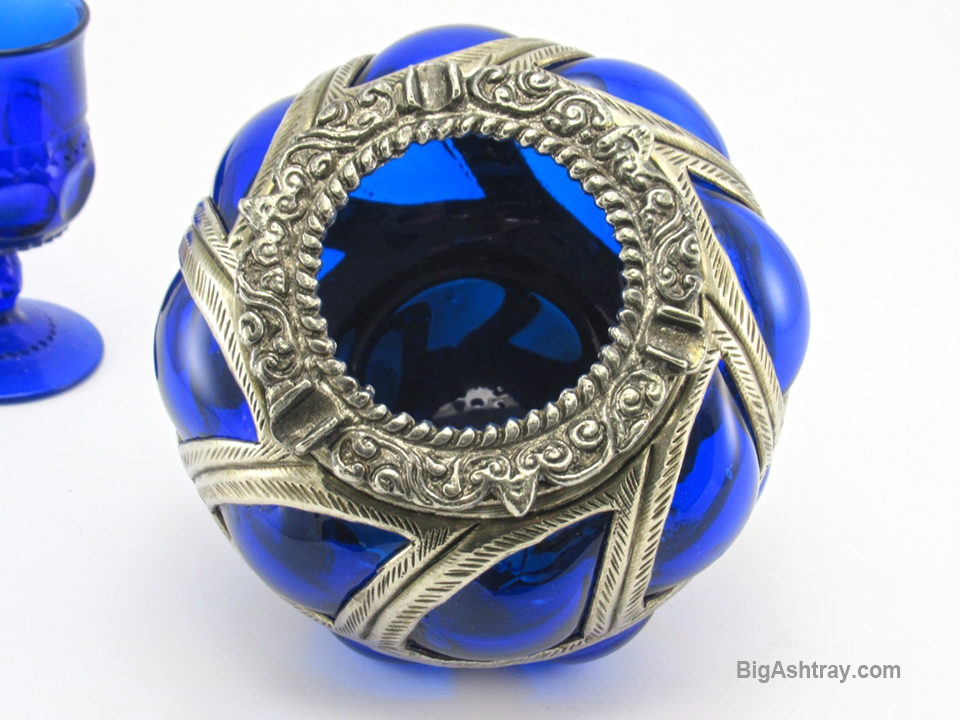 Antique Cobalt blue caged glass ashtray bowl or vase.