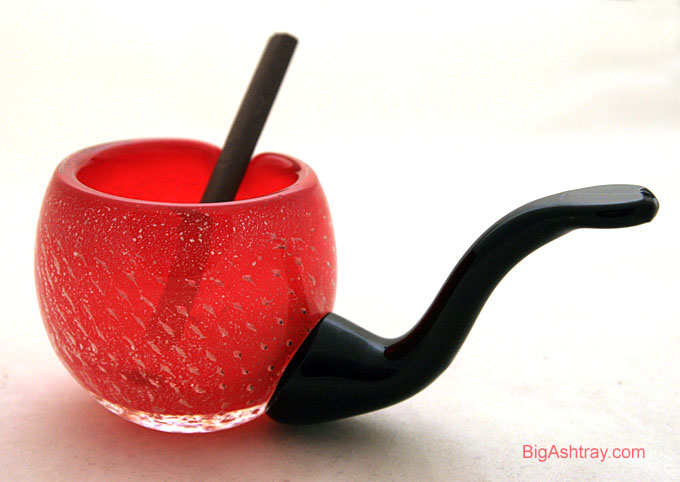 These useful whimsey’s were made by many Italian makers. This one is was made by one of the finer Murano/Venetian/Italian glass blowers, very nice quality. Big glass pipe measures 6″ long, 2.5″ at tallest, 2.25″ deep bowl. Perfect for a pipe smoker, or for rolled smokes (has one small cigarette rest)