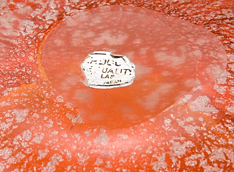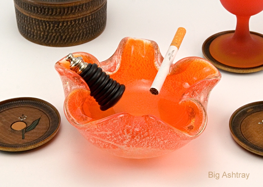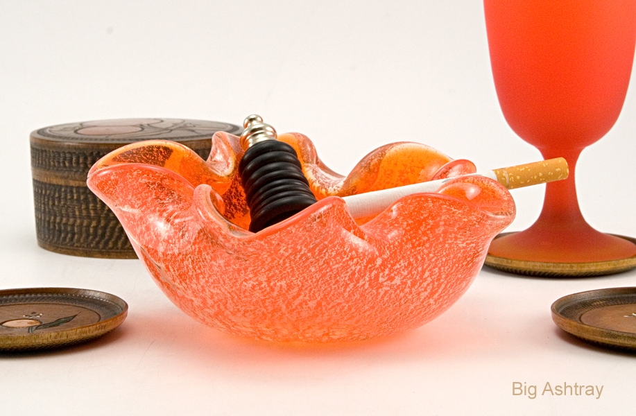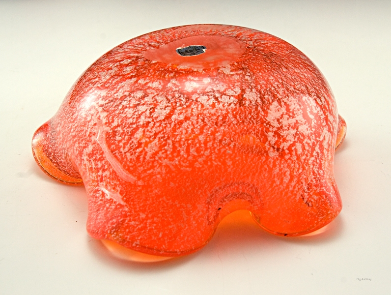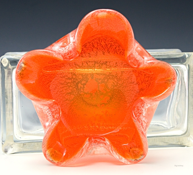 This bright orange sparkling ashtray is an example Japanese Murano export glass. It is not Murano glass, it is the less expensive alternative offered in the 1980’s.