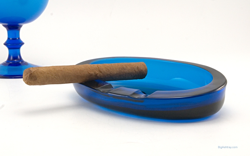 The Viking Bluenique Ellipse ashtray measures 7″ long, 4½” wide and 1.75″ at tallest. Features 3 shallow 1/2″ wide cradle rests, great for all sizes of smokes. Weighs 1½ lbs.