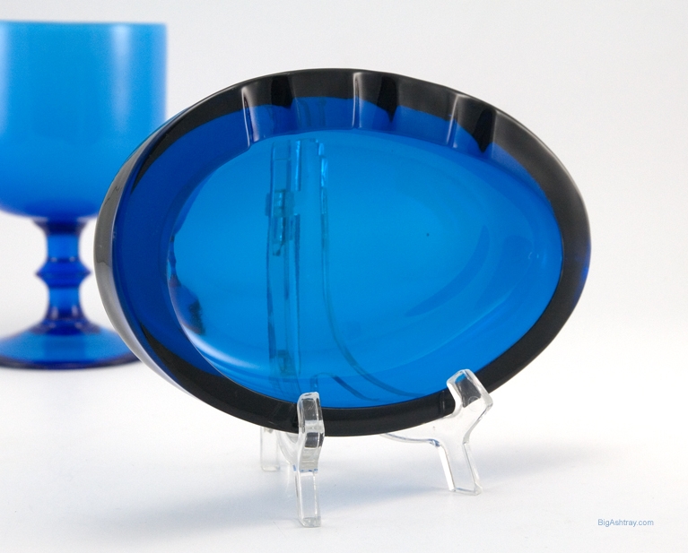 The oval Ellipse ashtray form first appeared in Viking Art Glass catalogs in 1962. Hand-made in Viking’s patented Bluenique color. Beautiful and rich color. High quality vintage glass.