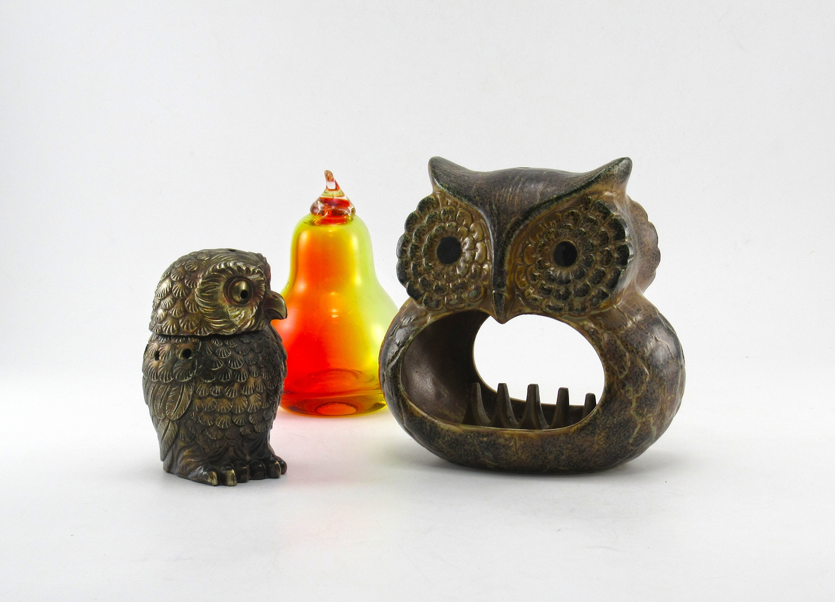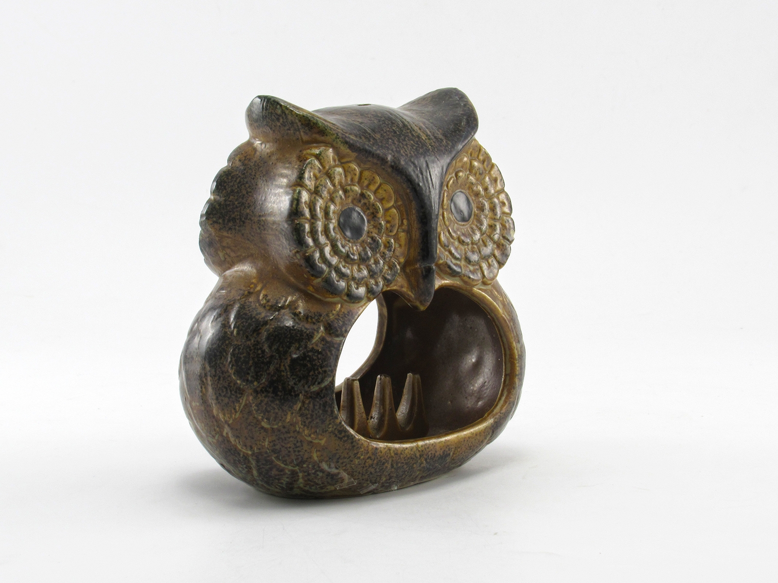 Mid-Century retro modern owl ashtray in hand-glazed pottery. Perfect smoking accessory for your favorite owl lover.